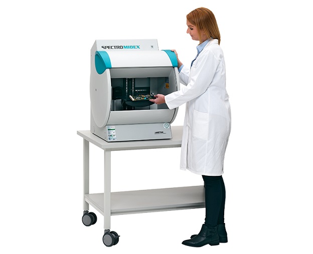 德國斯派克分析儀器公司的SPECTRO MIDEX X 射線熒光光譜儀,可迅速、準確地提供分析數據。根據市場要求,德國斯派克分析儀器公司對儀器進行了擴展而優化,使SPECTRO MIDEX 儀器在分析性能和使用靈活性方面獨樹一幟。   SPECTRO MIDEX 采用空冷、低能量X射線管和高分辨率的檢測系統,集準直、聚焦、樣品激發于一體,是功能強大的金屬分析儀。SPECTRO MIDEX適合分析體積很小的稀有金屬或面積較小的樣品。樣品室配有易于調節的樣品臺。通過20倍變焦攝像機可準確地確定測量位置。儀器配有計算機軟件,使操作更簡便。測量點直徑為0.7mm,樣品的總測量時間不超過100秒。在測定稀有金屬合金中的金含量時,樣品的測量精度為百分之0.15。   SPECTRO MIDEX 也可滿足快速分析的需要,在2分鐘內可完成從鋁到鈾的所有數十種元素的分析。在珠寶行業、檢測機構、海關商檢、電子電器工業以及汽車材材工業等領域,經常需要對樣品進行非破壞性的元素分析或快速分析,同時對分析面積及靈敏度也可能有苛刻的要求,如RoHS檢測、ELV檢測、貴金屬成分分析等。   應用范圍 電子行業電子元器件RoHS指令的快速檢測 金屬、汽車、航空領域超大及微小部件的成分檢測 珠寶首飾及貴金屬合金的分析 司法檢定分析 其它微區分析和較大樣品表面的元素分布分析。