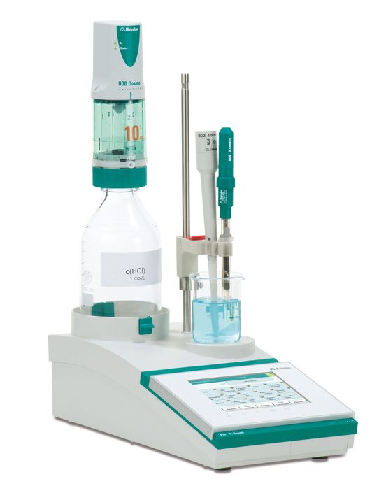 | 攪拌器,滴定臺 | 內置 802 螺旋攪拌 另外還可添加 1 x 801 磁力攪拌 或 1 x 802 螺旋攪拌 或 1 x 803 吸排液滴定臺 | 帶有數據芯片的智能交換單元/多思TM Dosino加液單元 | 至多 2 x 多思TM Dosino加液單元或 2 x 805 Dosimat 加液器 |
